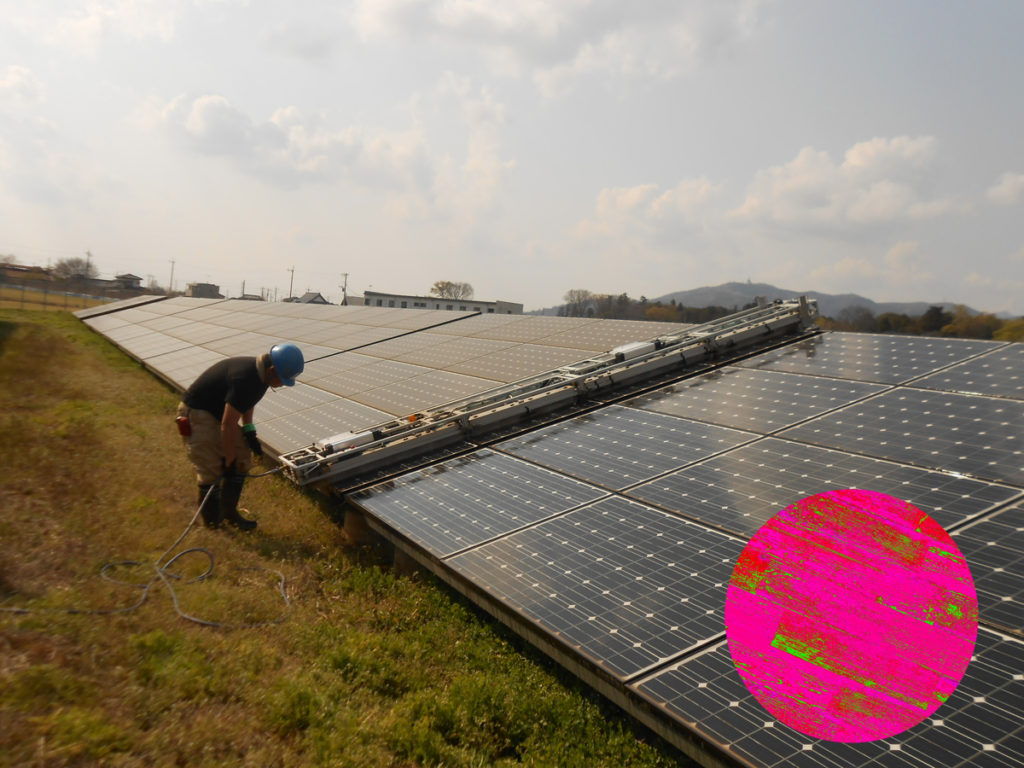 株式会社 共和製作所 太陽光発電所メンテナンス事業 医療機器部品の組み立て 生産設備の設計、製作、メンテナンス事業 太陽光発電所メンテナンス事業 太陽光発電所メンテナンス事業 ソーラーパネルの洗浄、設備点検 洗浄風景 ドローンによるパネル診断 【ドローン点検の効果・特徴】大型の太陽光発電施設では目視点検で異常箇所を見つけることは困難を極めます。そこで、ドローンが、太陽発電施設の異常箇所や故障箇所を上空から正確かつスピーディに検出 解析結果をレポート化することができます。高性能のHDカメラにより、人力作業による目視点検に比べ、20倍異常早く、目視点検を行う事ができ、不具合箇所の見落としも防止出来ます。 高性能のサーモグラフィカメラにより、IVカーブ測定では検出が困難である、スネイルトレイル、堆積物等も検出し、解析する事が出来ます。また、IVカーブ測定とは異なり、発電を一切止めず故障検出探査を行う事が出来ます。 設備周辺の除草作業 雑草の成長は非常に早く、成長期にはあっという間に、発電所の敷地内を埋め尽くすほどになるため、計画的な除草対策は必要になってきます。草刈機による雑草の刈り倒しを行い、事後の雑草状態を確認して、年間を通じた除草対策を行います。 お問い合わせはこちら ソーラーパネル事 担当:鈴木